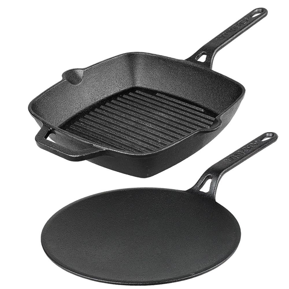 Pre seasoned: Vinod Legaacy Cast Iron cookware is pre-seasoned twice with 100% vegetable oil to create a chemical-free non-stick surface over it.