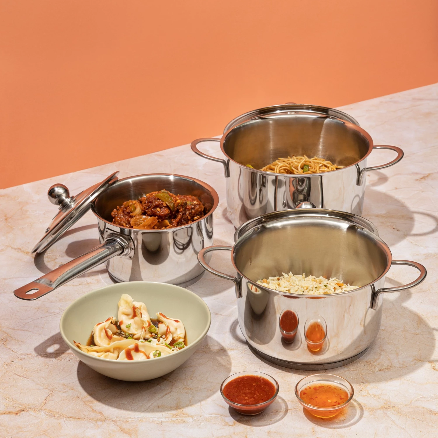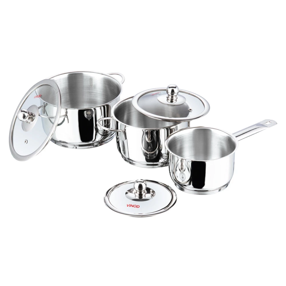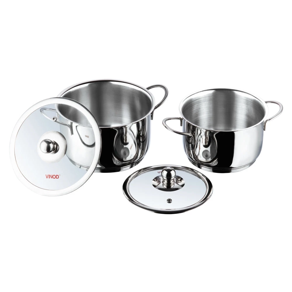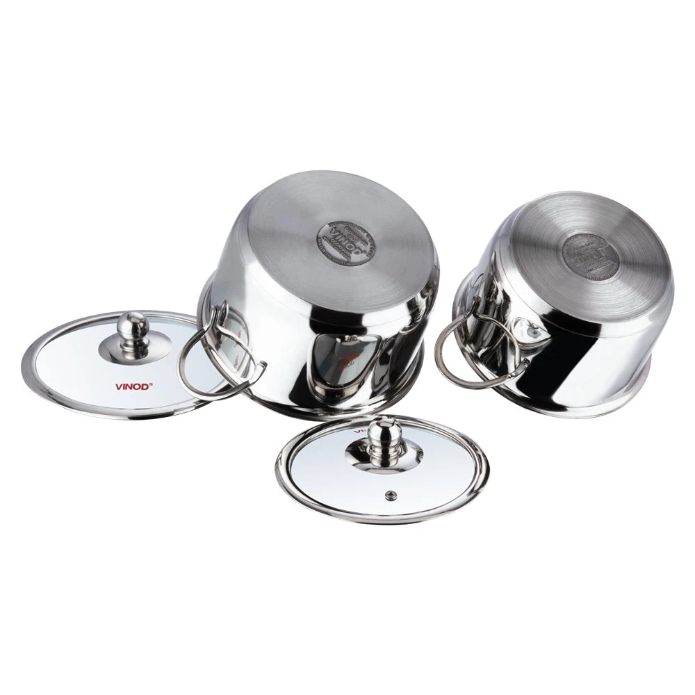 Made from food grade high quality, thick stainless steel for longer use. To ensure uniform and faster cooking an inner layer of food safe AISI 304 grade stainless steel sandwiches a layer of high quality virgin aluminium. The base is a layer of AISI 430 grade magnetic stainless steel makes the cookware induction compatible.