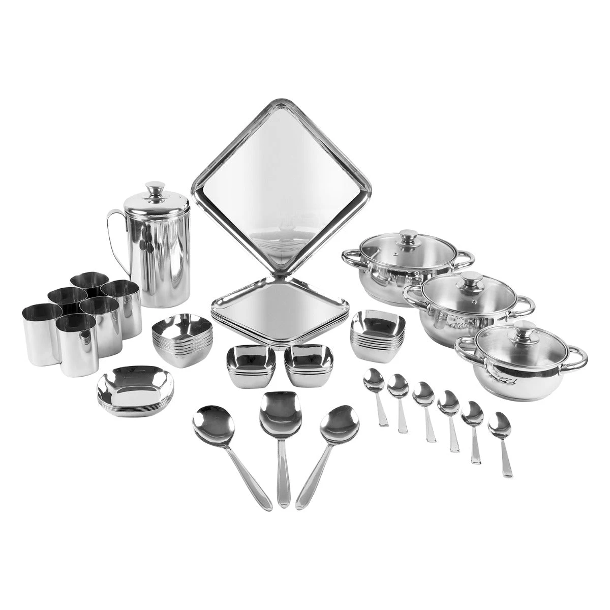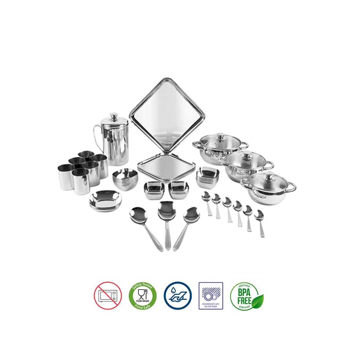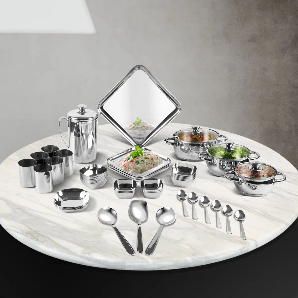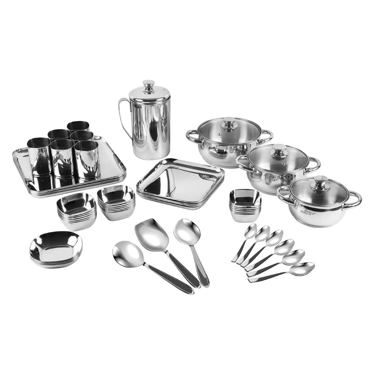 Easy to clean and maintain the stainless steel dinner set is the server’s delight. Featuring a highly attractive design, this lunch/dinner set will impress your lunch and dinner guests while providing a great canvas to showcase your delicious food. It does not retain or impart colours, odours, stains or flavours and is suitable for serving all types of cuisines.