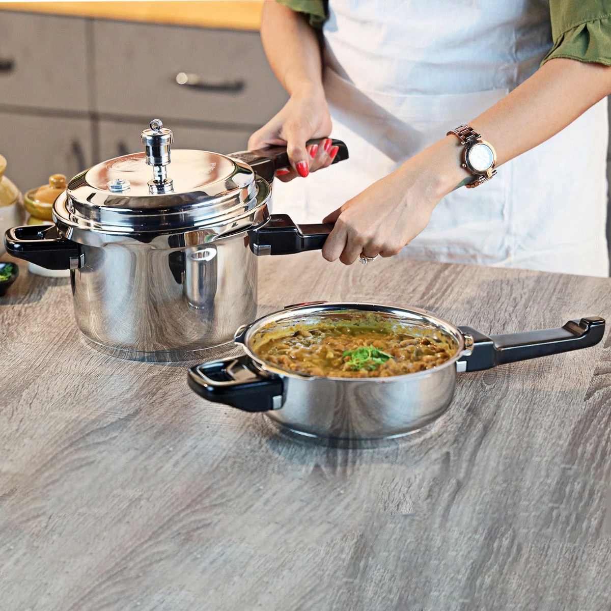 The Vinod combo set includes a 3 Litre Pressure Cooker ideal for 2 – 3 people plus a 2 Litre Pressure cooker which is ideal for 1 – 2 people. This Pressure cooker combo will make an excellent addition to your kitchenware collection.