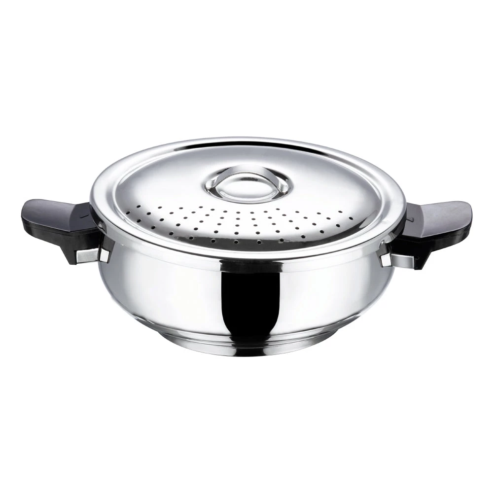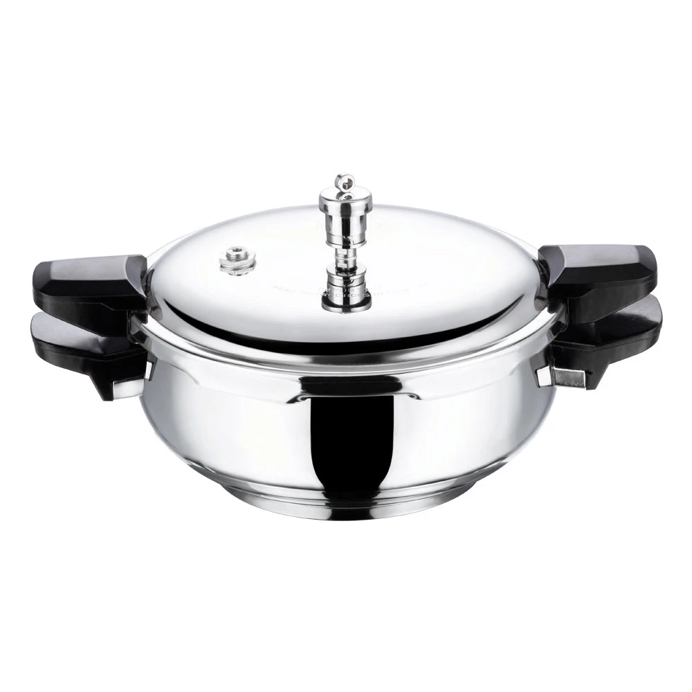 Our cookers seal in the flavor and nutrients of your food while being time and energy efficient. Our innovative sandwich bottom, aluminum encapsulated stainless steel SAS technology ensures even cooking, preventing food from getting burnt. A Gasket Release system and a Fusible safety valve provides maximum safety during use. This product with its ultra-hygienic, food grade stainless steel and perfect mirror finish interior ensures your food doesn’t stick when served.