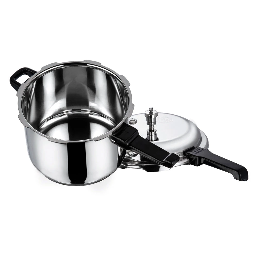 The perfectly fitting, fusible safety valve and gasket release system are designed to make your cooking experience secure and effortless. Its ultra-hygienic, perfect mirror finish inner surface ensures no food particles get stuck and does not impact the color, taste or odor of the food. This product is built for durability and can be used on induction and gas stoves. It comes with a 24 months warranty against manufacturing defects; terms and conditions apply.