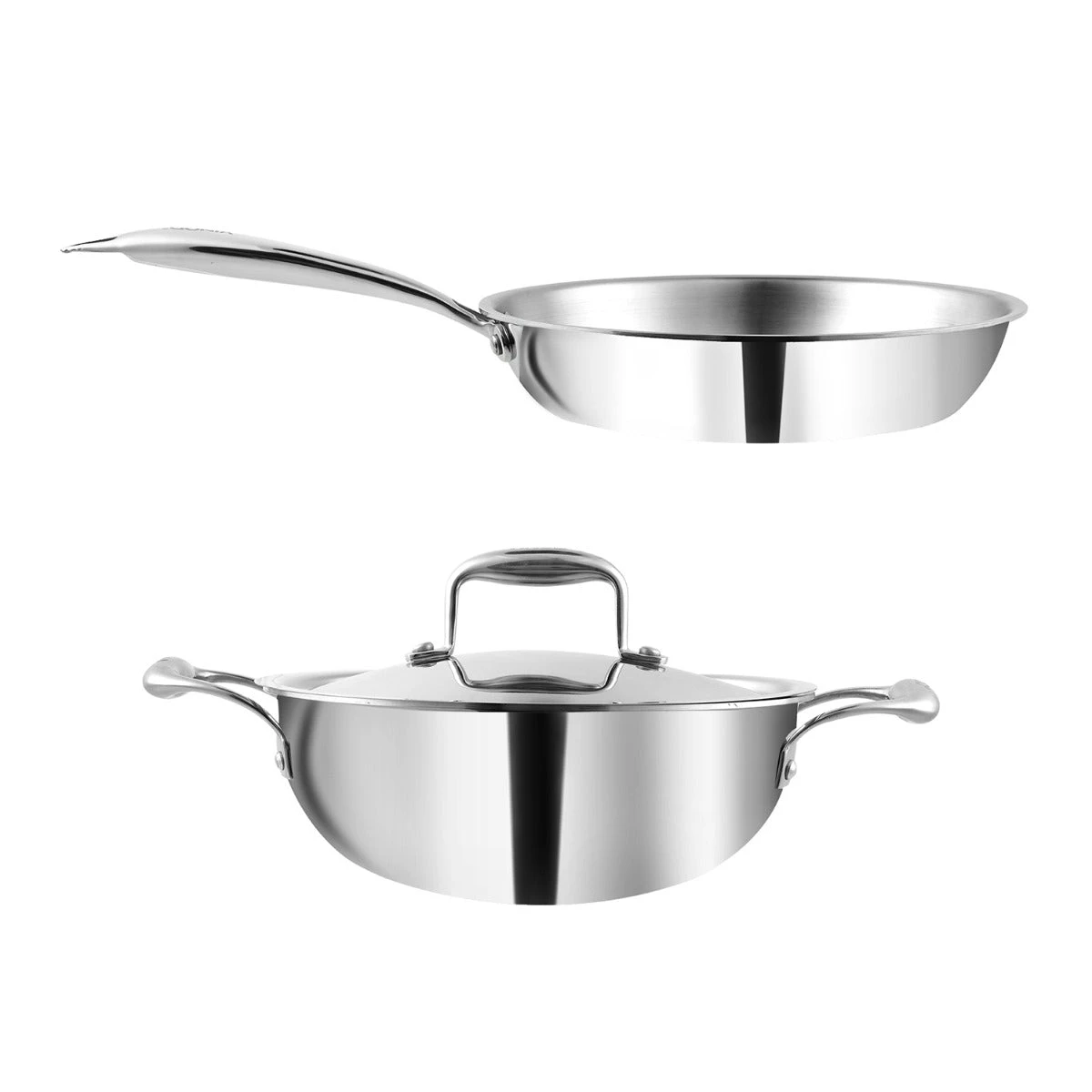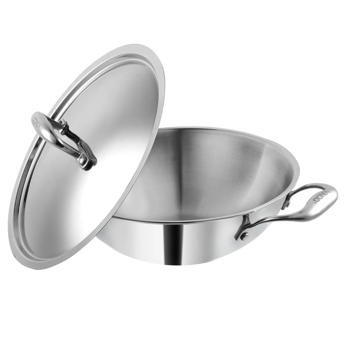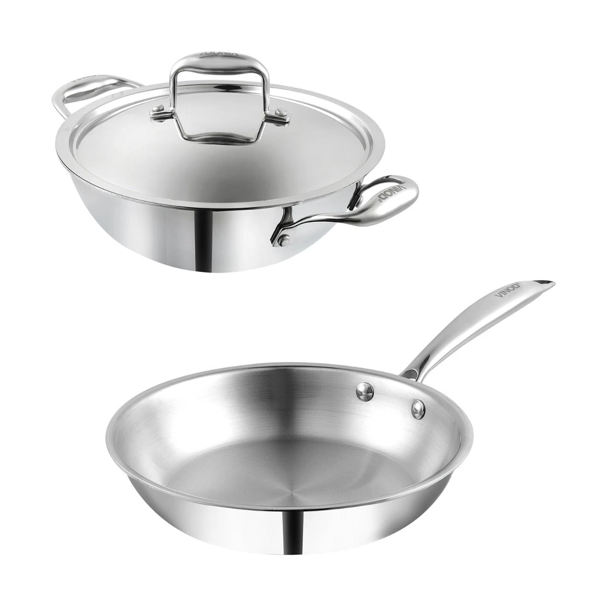 Vinod Platinum Triply Stainless Steel 2 Pcs Combo Set of Extra Deep Kadai With Lid 1.5 L Capacity (20 cm Diameter) and Frypan 20 cm Diameter – Silver (Induction and Gas stove Friendly)
