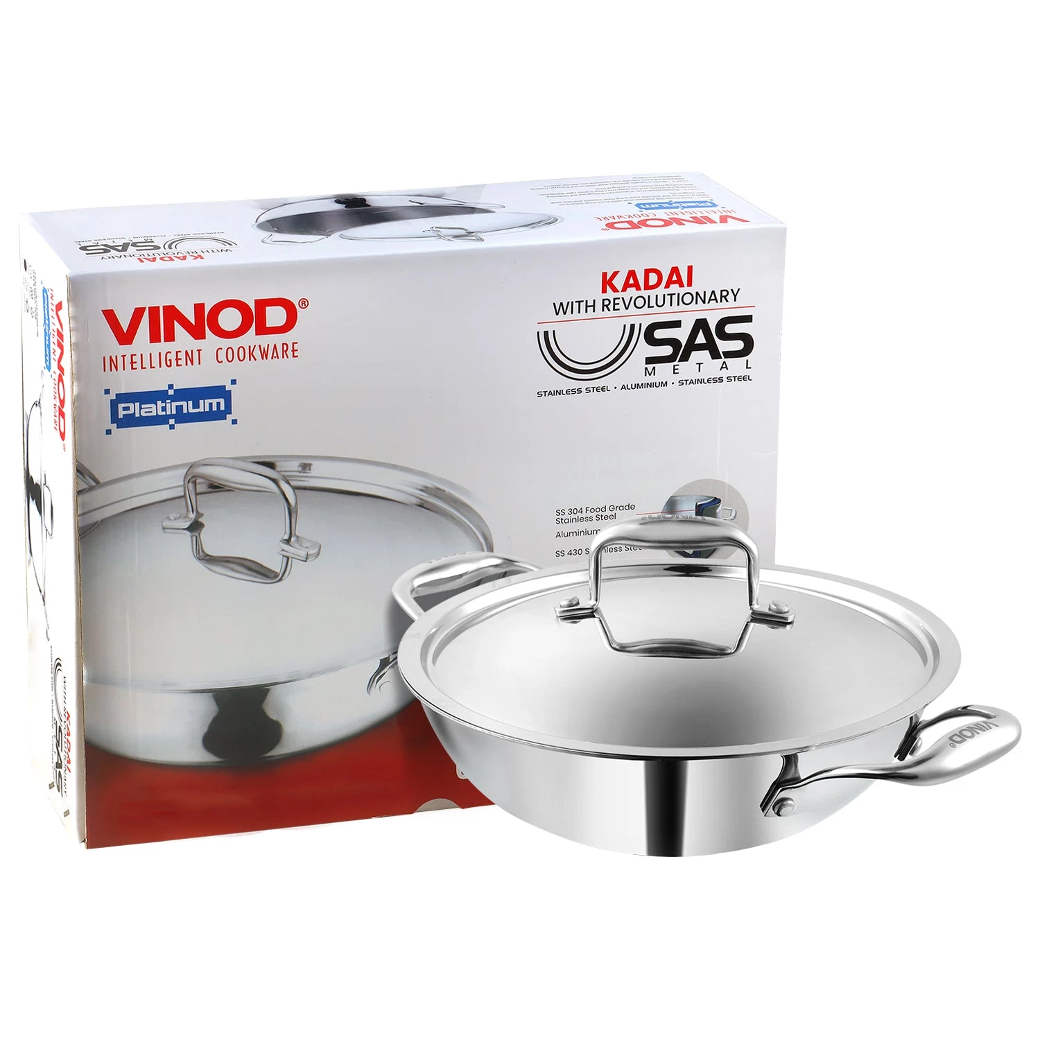 Vinod Platinum triply stainless steel series is made up with SAS technology, which is a triple layer construction of stainless steel, aluminium and stainless steel.