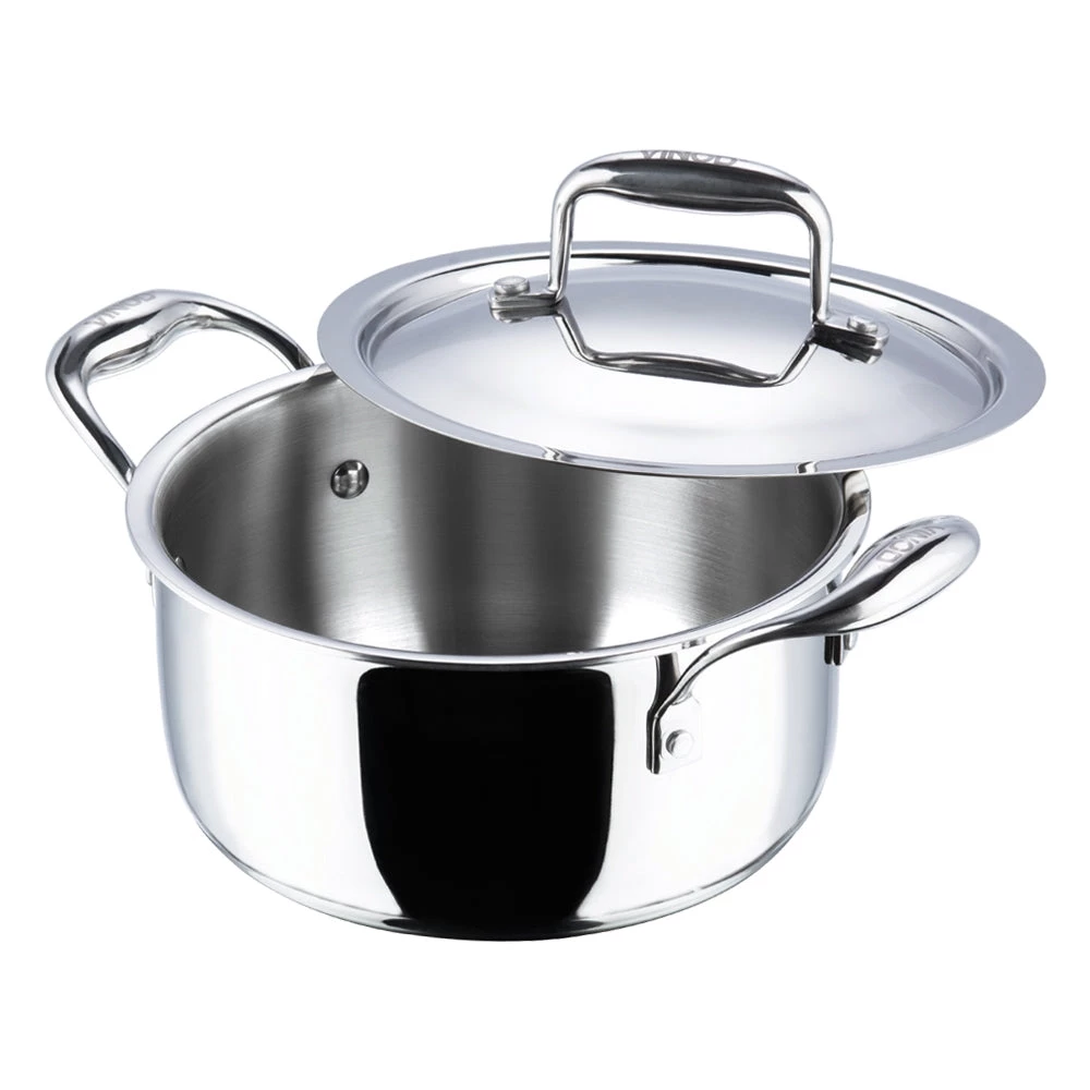 Vinod Platinum triply stainless steel series is made up with SAS technology, which is a triple layer construction of stainless steel, aluminium and stainless steel.